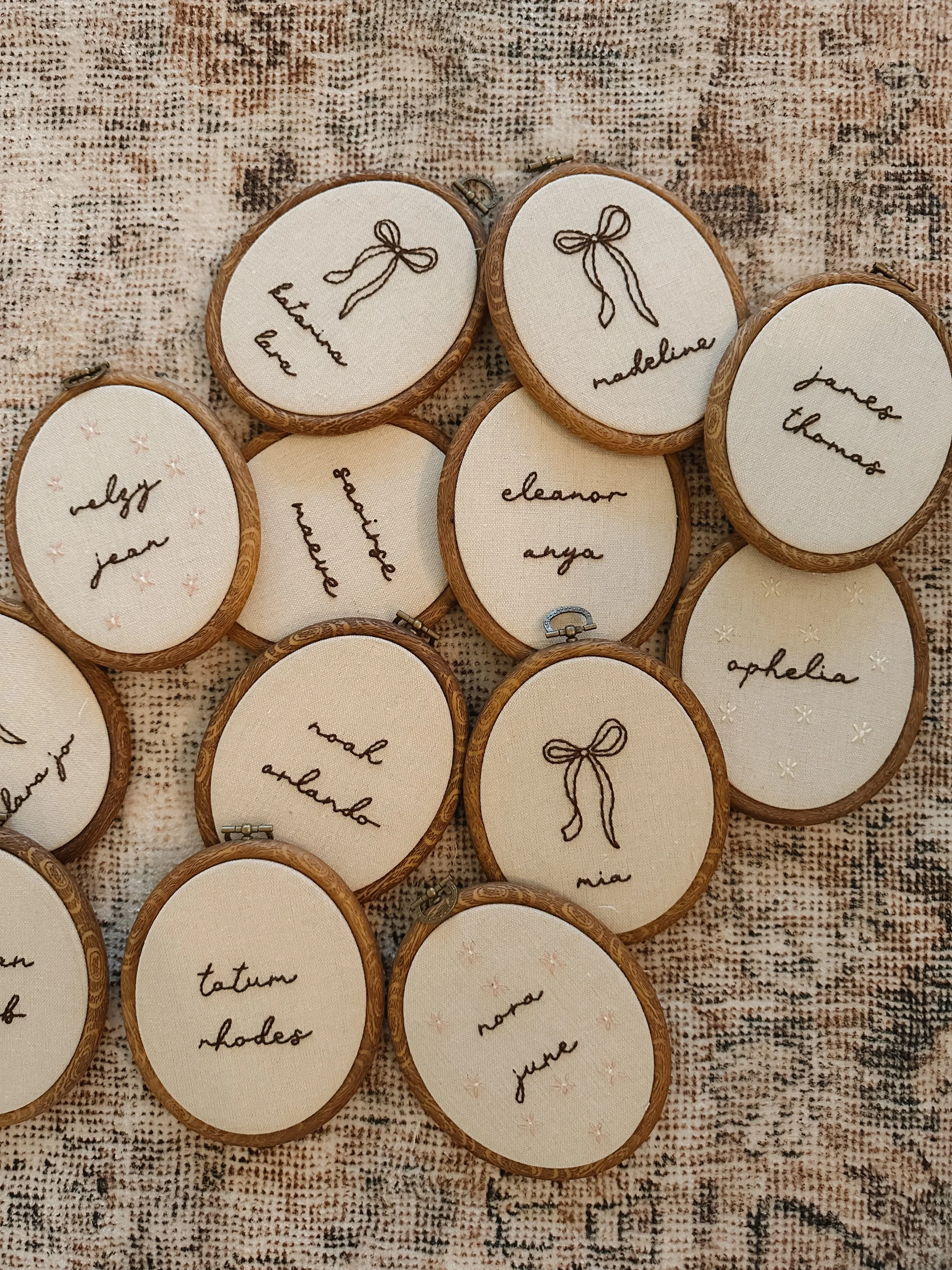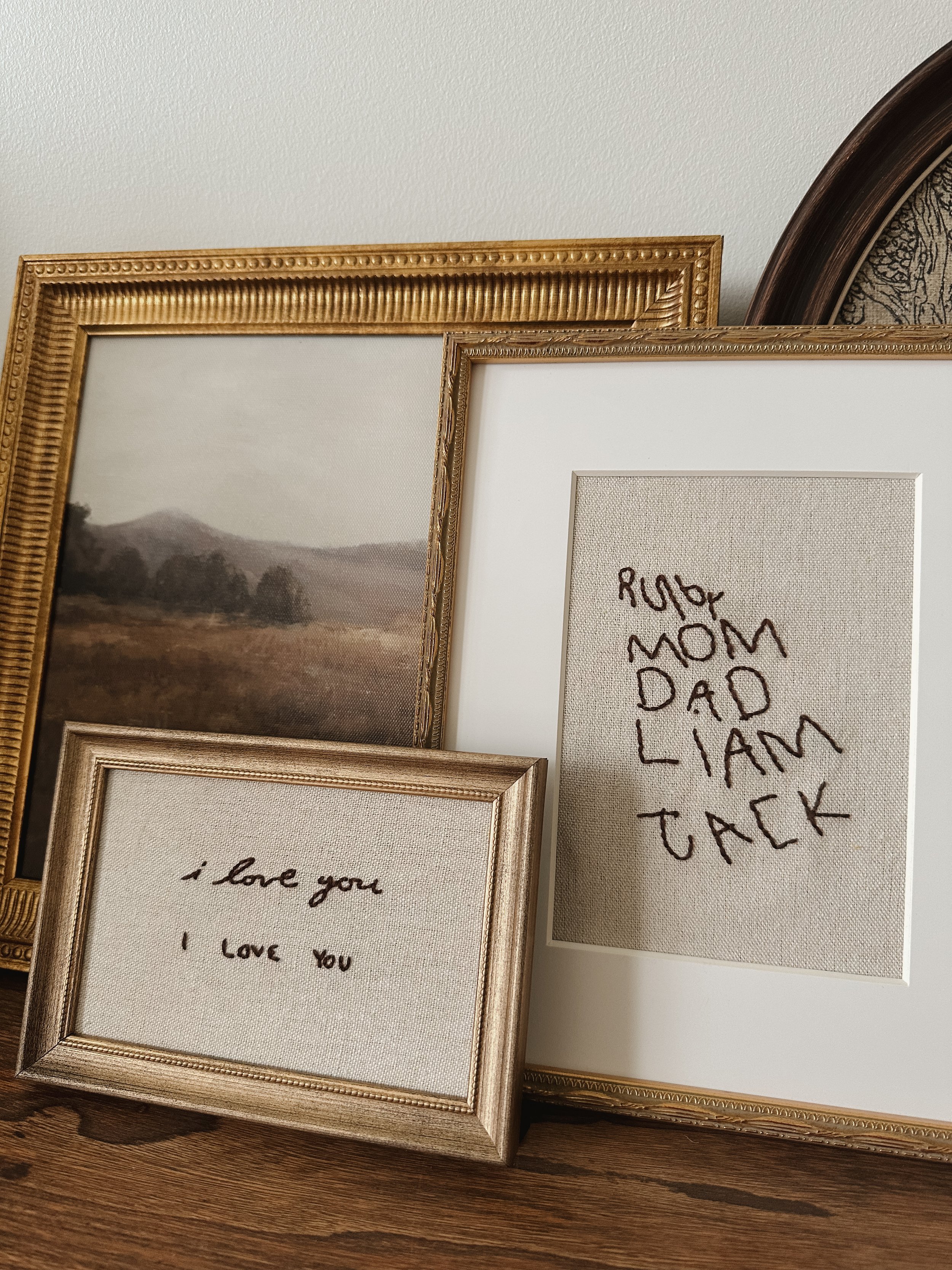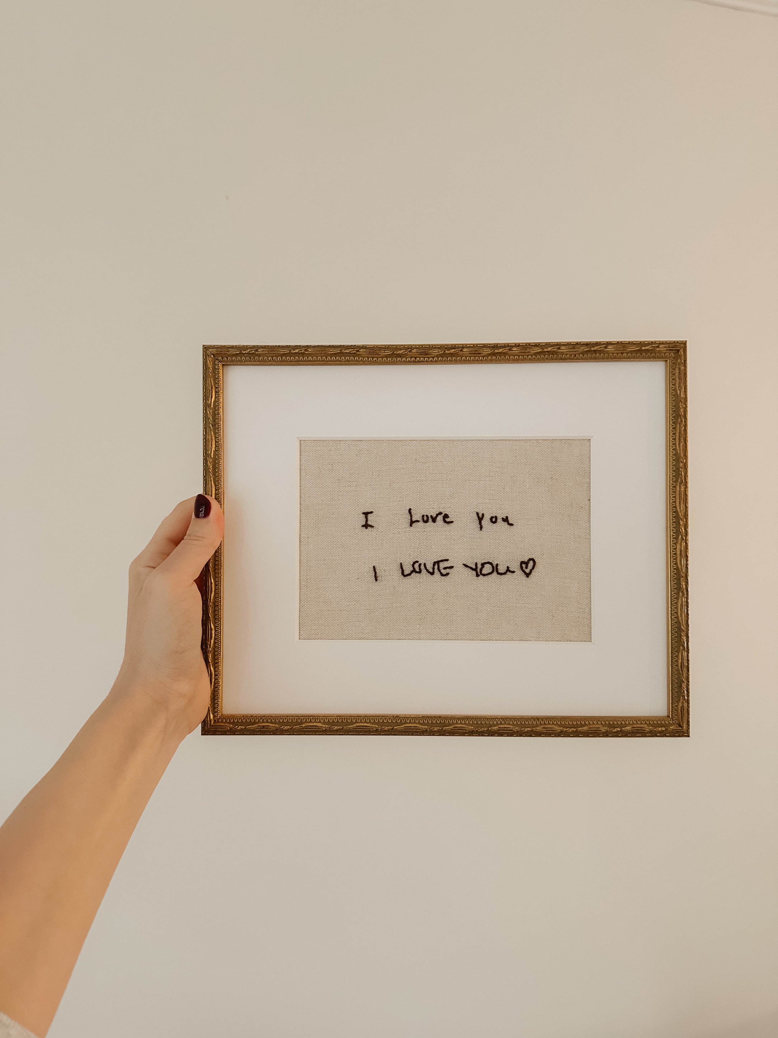 Your handwriting piece begins with an image of the original note, card, or message you’d like embroidered. After purchase, you’ll upload your handwriting sample through a simple form. I carefully scale and translate the writing to work within the size of the embroidery hoop, then hand-stitch it line by line. Each piece is intentionally slow and thoughtful, designed to preserve the feeling of the original writing rather than create a printed replica.